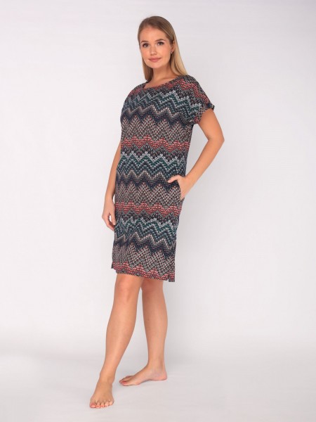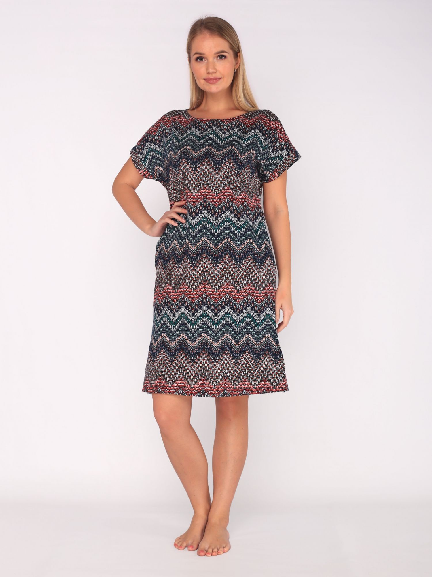 Туника женская свободного покроя в оригинальной расцветке,туника выполнена из натурального хлопкового материала, ткань очень приятна к телу.Прекрасно подойдет для дома и отдыха.Прямой крой идеально садится по фигуре не сковывает движений.Подходит для всех типов фигур.
