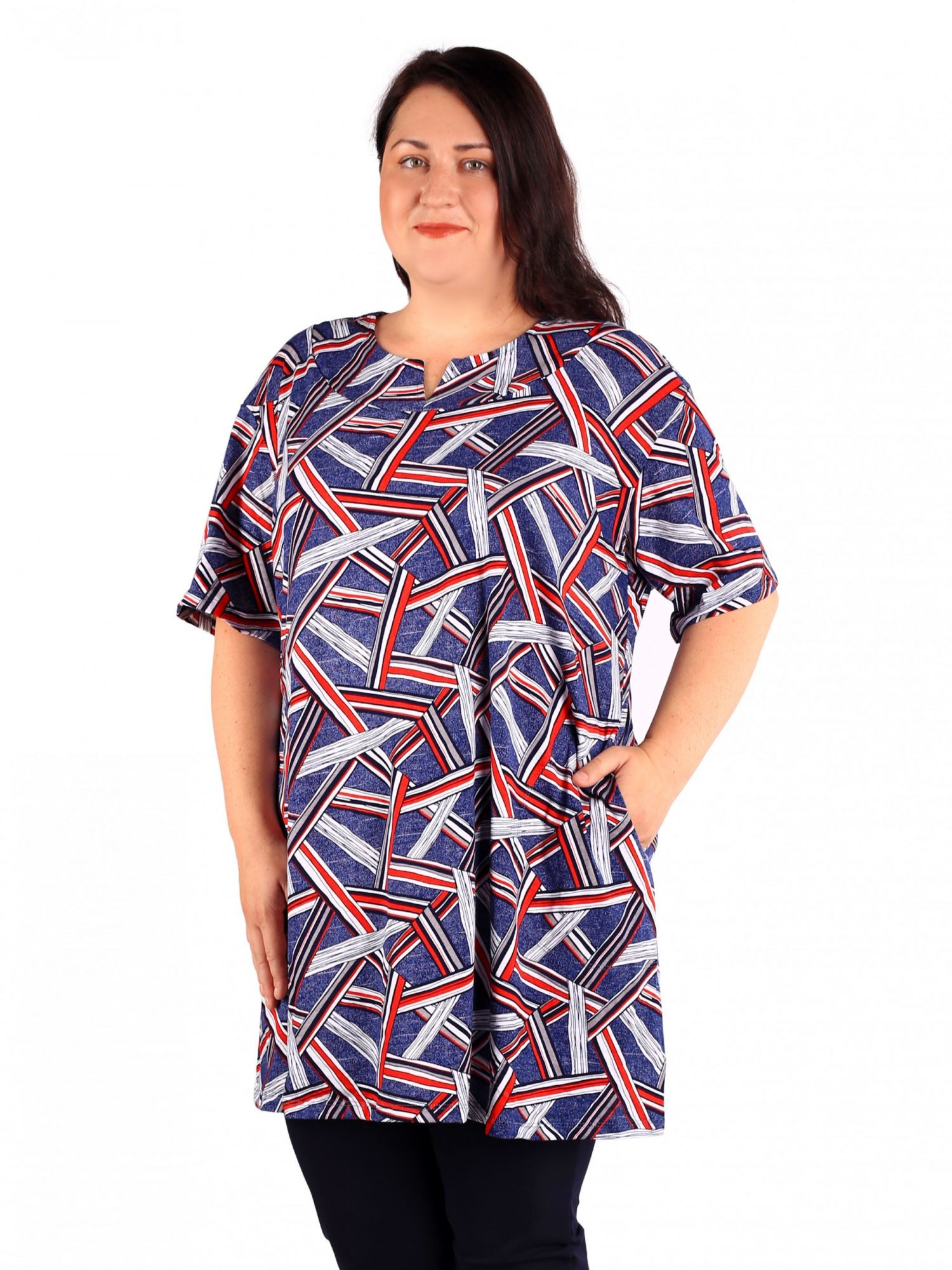 Женская туника большого размера выполнена из трикотажной ткани . Длина изделия до середины бедра. Рукав до локтя. Удлиненная туника прямого свободного силуэта позволяет сочетать тунику с брюками и лосинами.Широкая палитра цветов позволит вам одевать тунику как на повседневную носку, так и на торжественное мероприятие